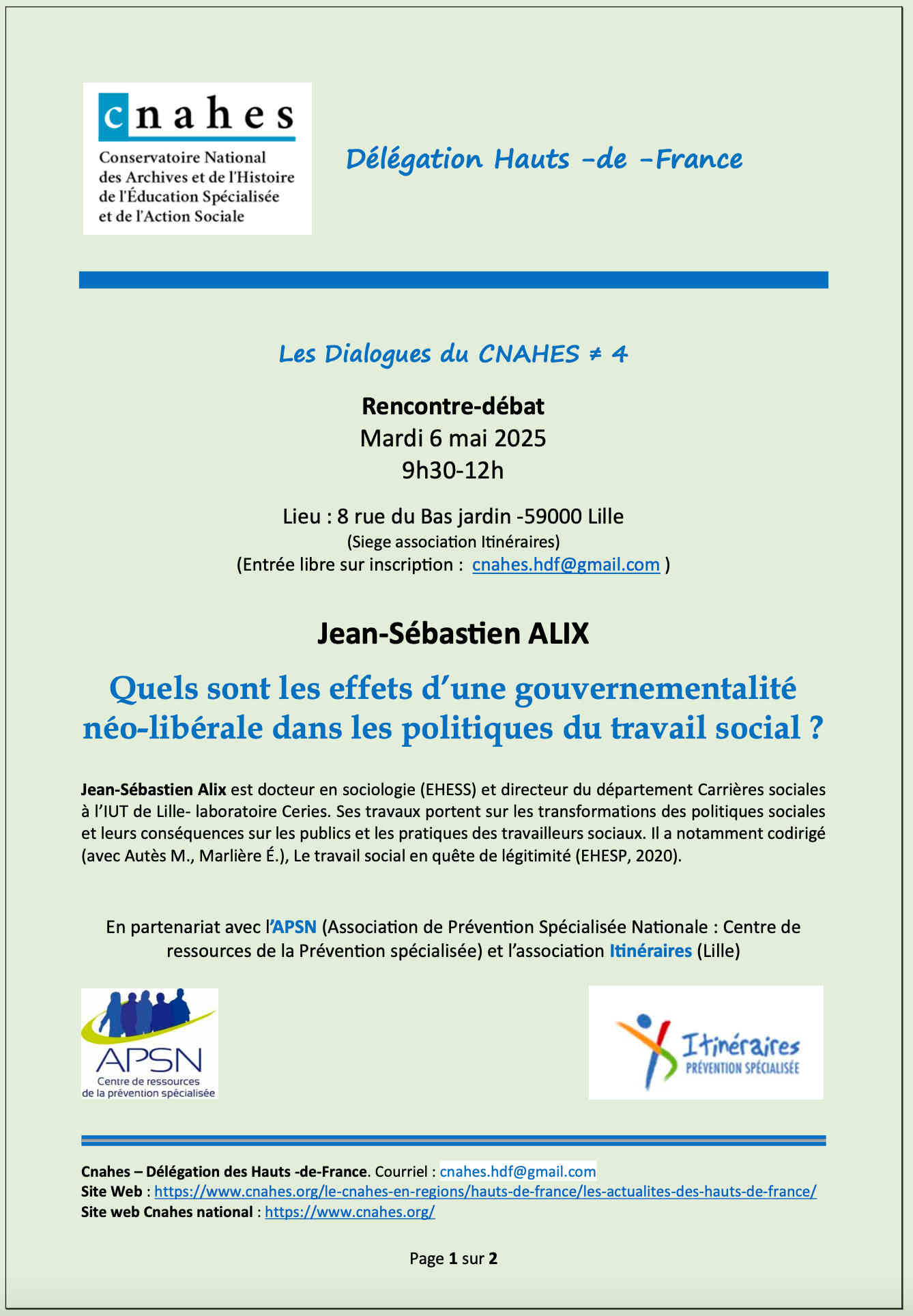 Le Cnahes Hauts-de-France vous invitent, dans le cadre de ses Dialogues, à une rencontre débat avec Jean-Sébastien ALIX, docteur en sociologie (EHESS) et directeur du département Carrières sociales à l’IUT de Lille- laboratoire Ceries, sur le thème : « Quels sont les...